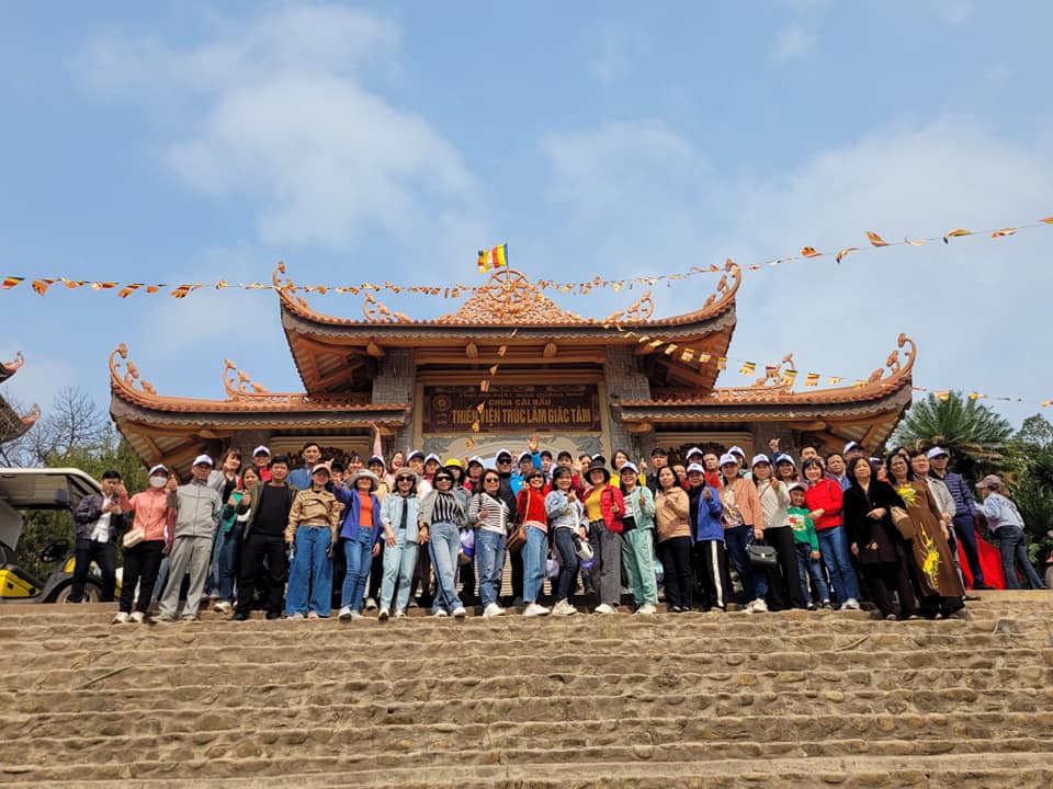 09h30: Đến chùa Cái Bầu, Thiền Viện Trúc Lâm Giác Tâm nằm trên cao, dựa lưng vào núi, hướng ra vịnh Bái Tử Long quanh năm song vỗ. Chùa được xây dựng trên nền chùa Phúc Linh tự cũ với tên Thiền Viện Trúc Lâm có quy mô lớn,nội thất công phu rất đẹp.