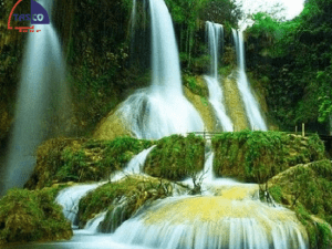 13h45: Xe đưa Quý khách tới tham quan thác Dải Yếm, nơi có dòng thác hùng vĩ, ngày đêm đổ nước trắng xóa, được ví như dải yếm hờ hững, vắt ngang trời Tây Bắc. Trải nghiệm cầu kính 5D đầu tiên và lớn nhất Việt Nam với hơn 30 hiệu ứng thú vị, tham quan làng Nhật Bản