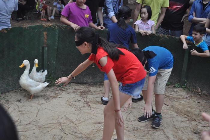 Đội 1: chơi teambuilding vui nhộn với các trò chơi : Khởi động, kéo co, nổ bóng, bịt mắt bắt vịt, gánh nước qua cầu khỉ, làm xiếc với trái bóng.